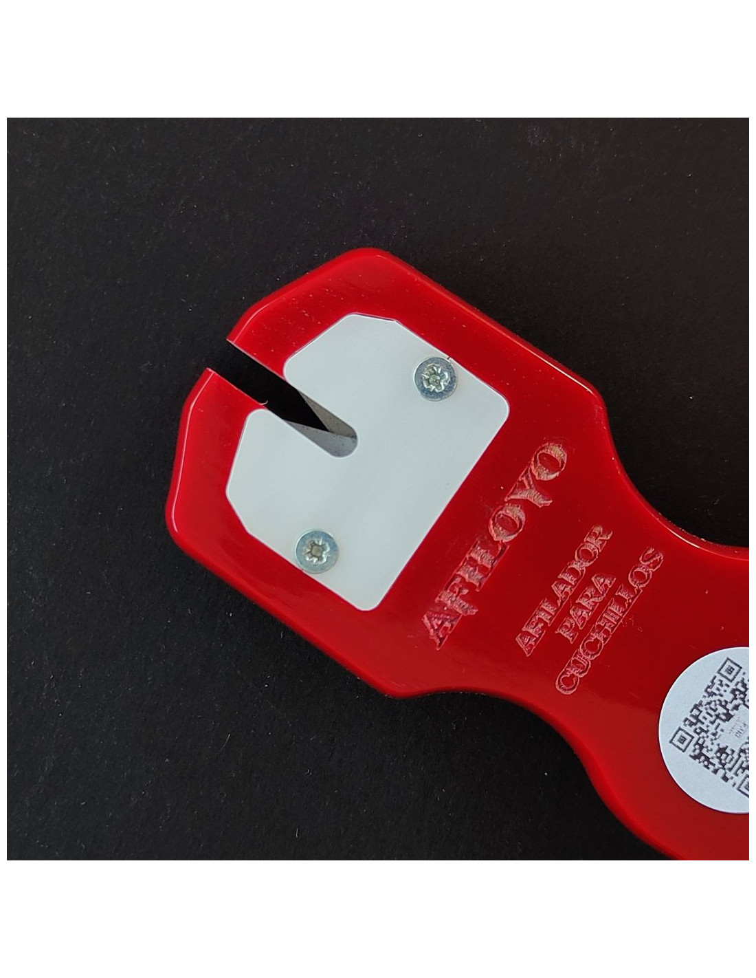 Afilador de fácil manejo, cuenta con un código QR para ver instrucciones de uso.