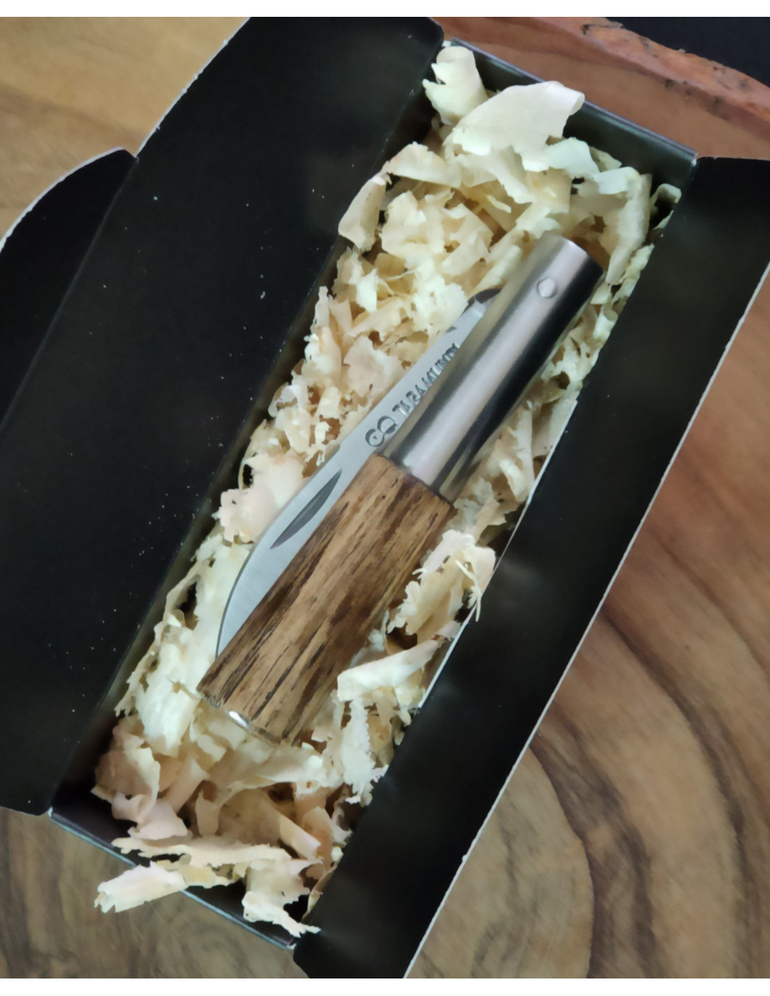 Empuñadura en madera de castaño (la veta y el tono pueden variar).