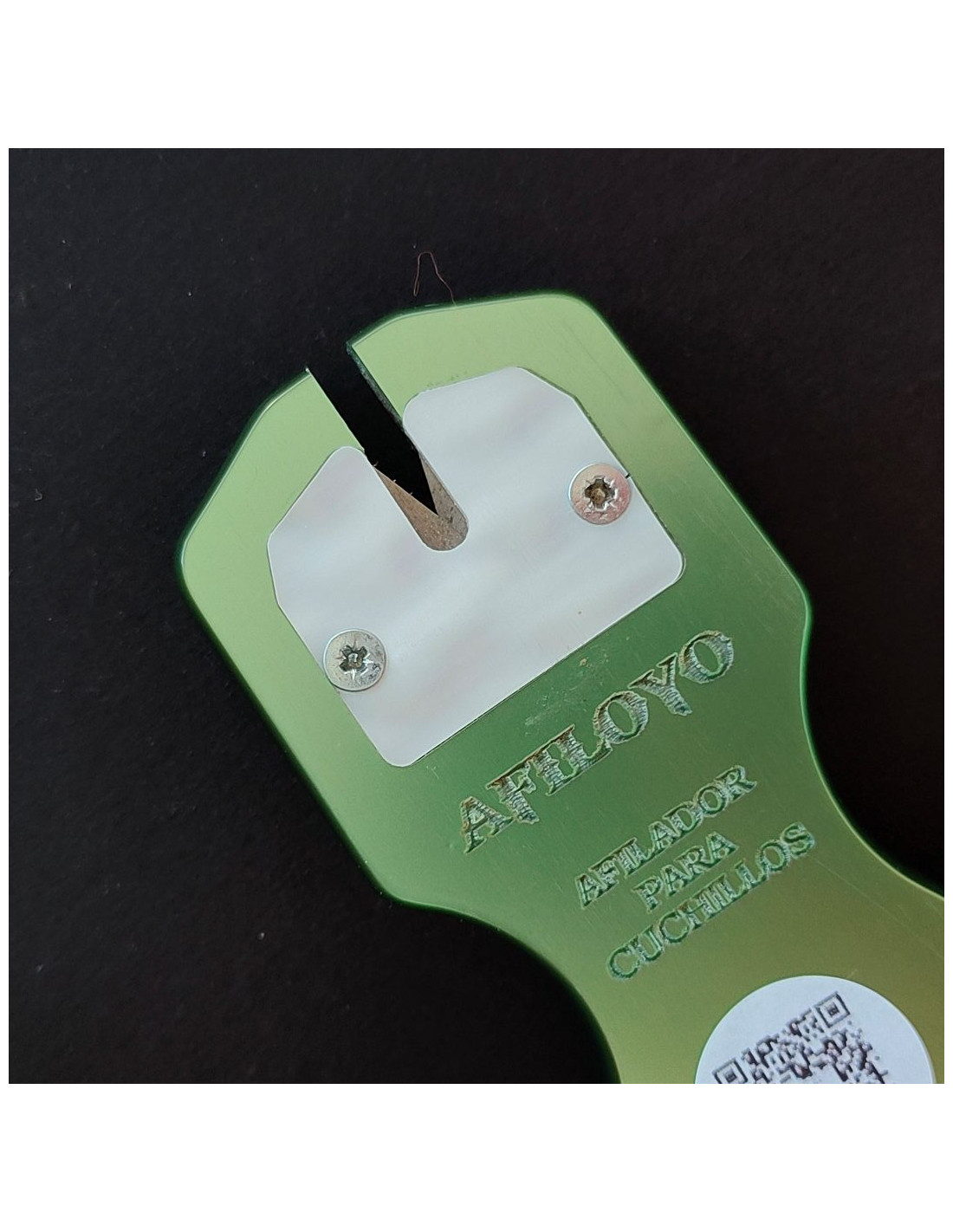 Afilador de fácil manejo, cuenta con un código QR para ver instrucciones de uso.