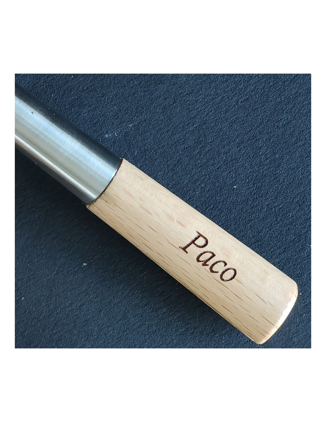 Se personaliza en la madera de la empuñadura con grabador láser. Se pueden grabar nombres, iniciales, fechas...