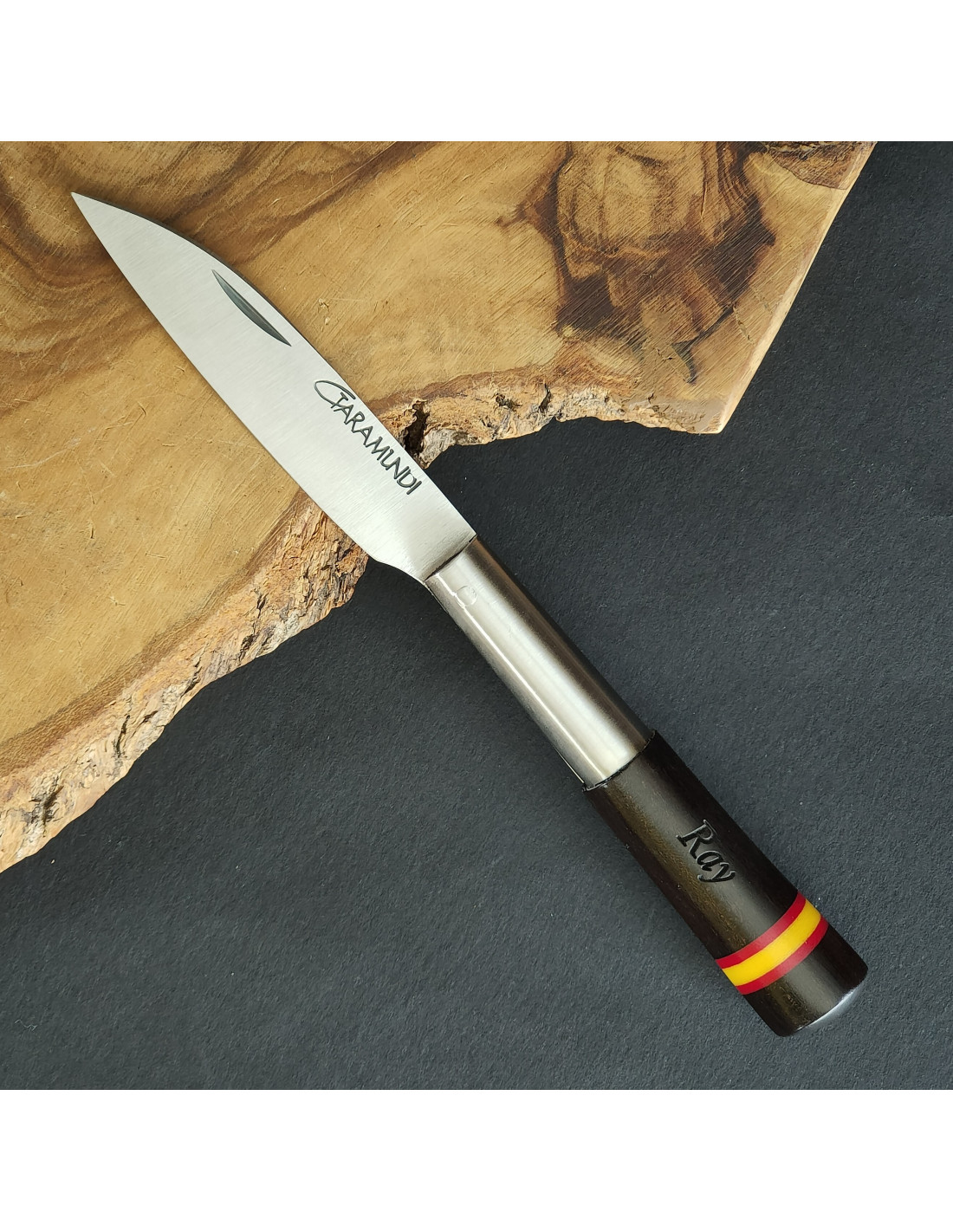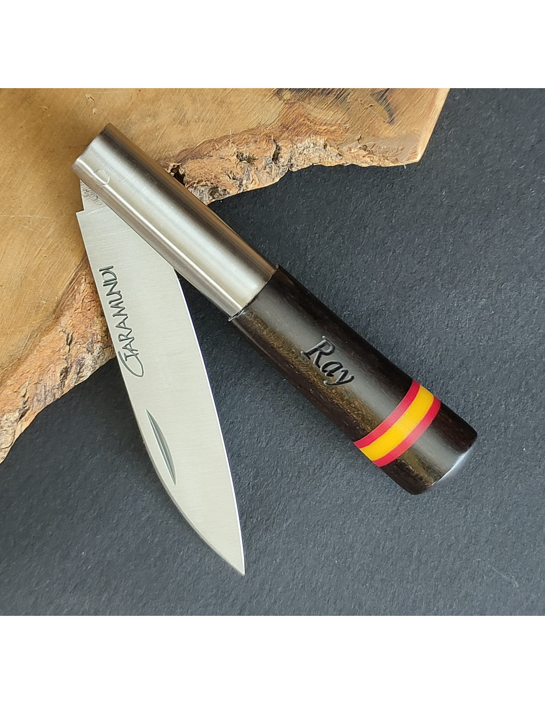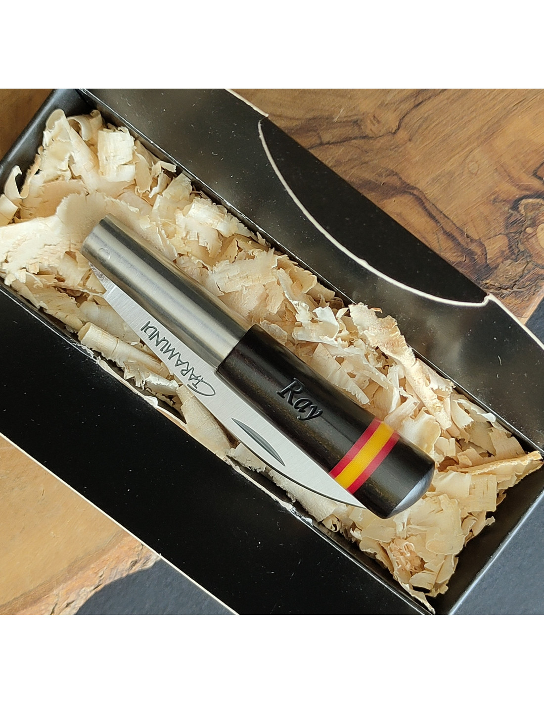Se personaliza en la madera de la empuñadura con grabador láser. Se pueden grabar nombres, iniciales, fechas...