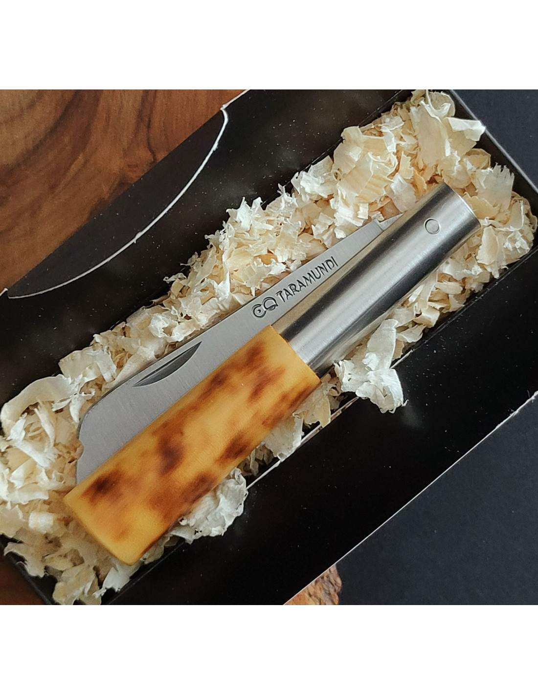 Se personaliza en la madera de la empuñadura con grabador láser. Se puede grabar un nombre, unas iniciales, una fecha...