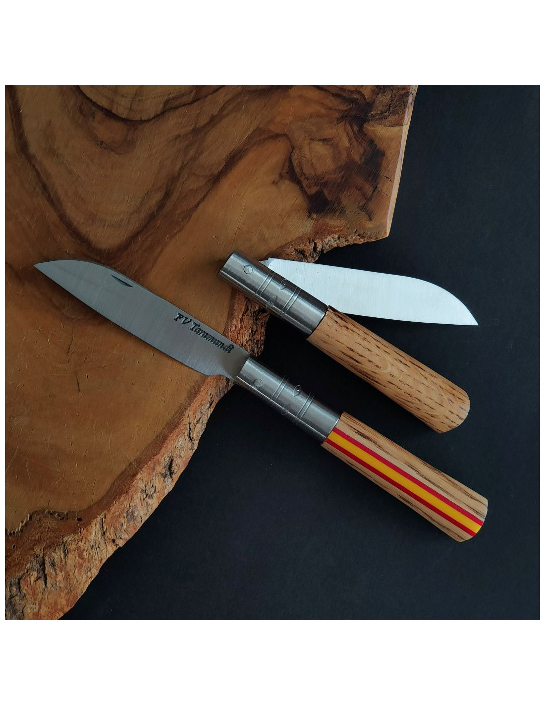 Se puede personalizar añadiendo al carrito un GRABADO ADICIONAL. Se personaliza en la madera de la empuñadura por el lado liso con un grabador láser. Se puede grabar un nombre, unas iniciales, una fecha...