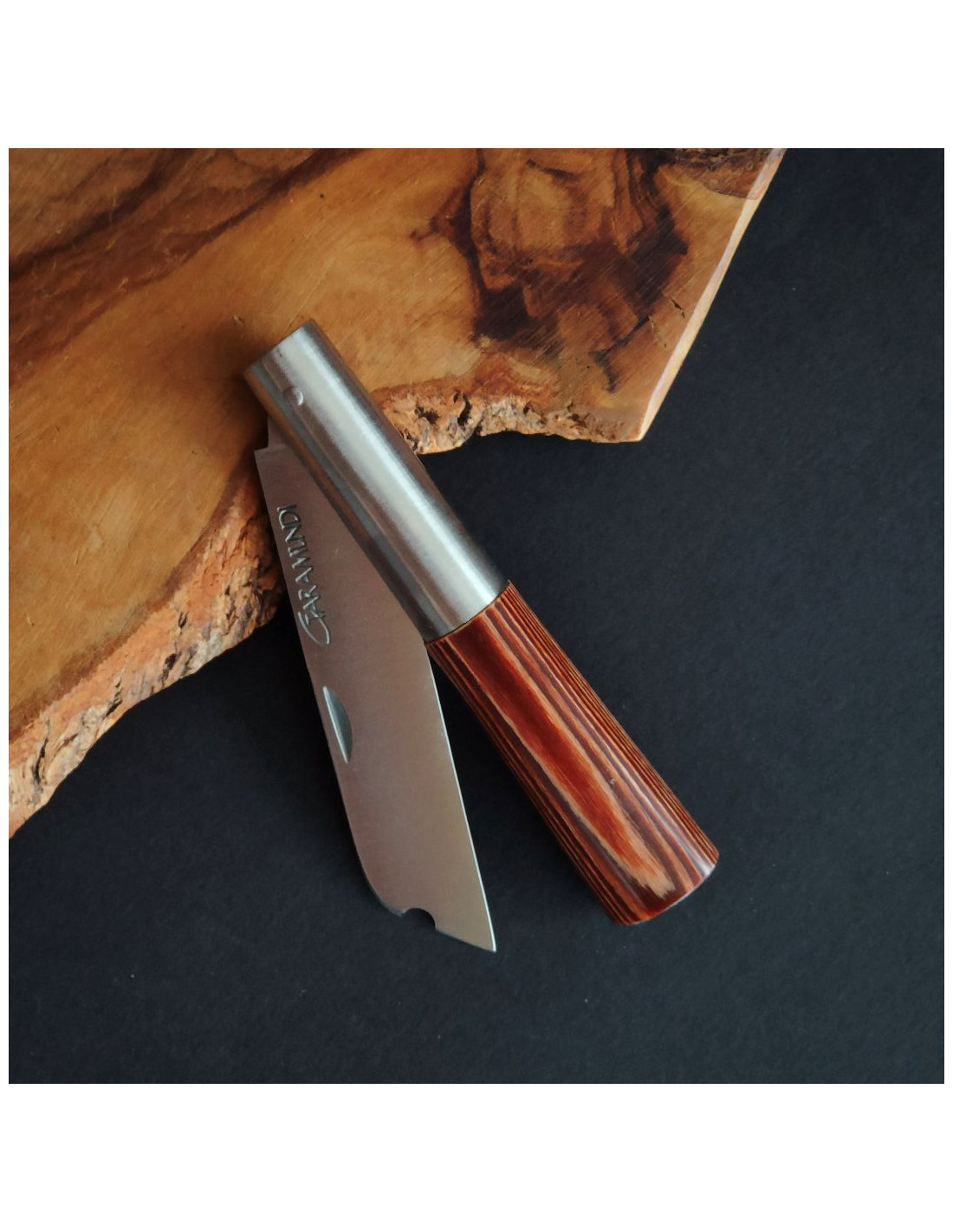 Se puede personalizar añadiendo al carrito de compra un GRABADO ADICIONAL. Se personaliza en la madera de la empuñadura con grabador láser. Se pueden grabar nombres, iniciales, fechas...